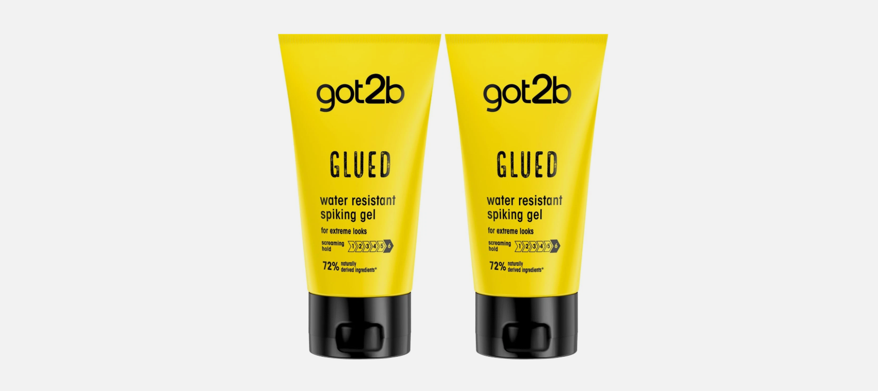 Two Schwarzkopf Got2B Glued Waterproof Styling Gels keep your hair as strong as concrete. The gel has been tested in a wind tunnel, among other things, and holds hairstyles perfectly in place. Its waterproof properties ensure your hair stays perfectly in place, regardless of the conditions. It only loses its shape when it comes into contact with shampoo. The perfect hair styling gel for high spikes!