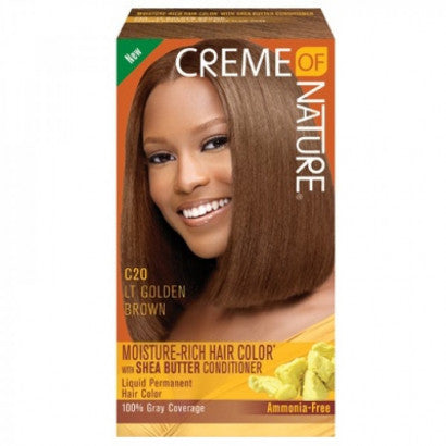 Experience Crème of Nature Moisture-Rich Hair Color* with ultra-hydrating conditioner infused with mango and shea butter for multi-dimensional color with radiant shine. Ammonia-free. 100% gray coverage. Liquid, permanent hair color for rich, long-lasting color with shine.
